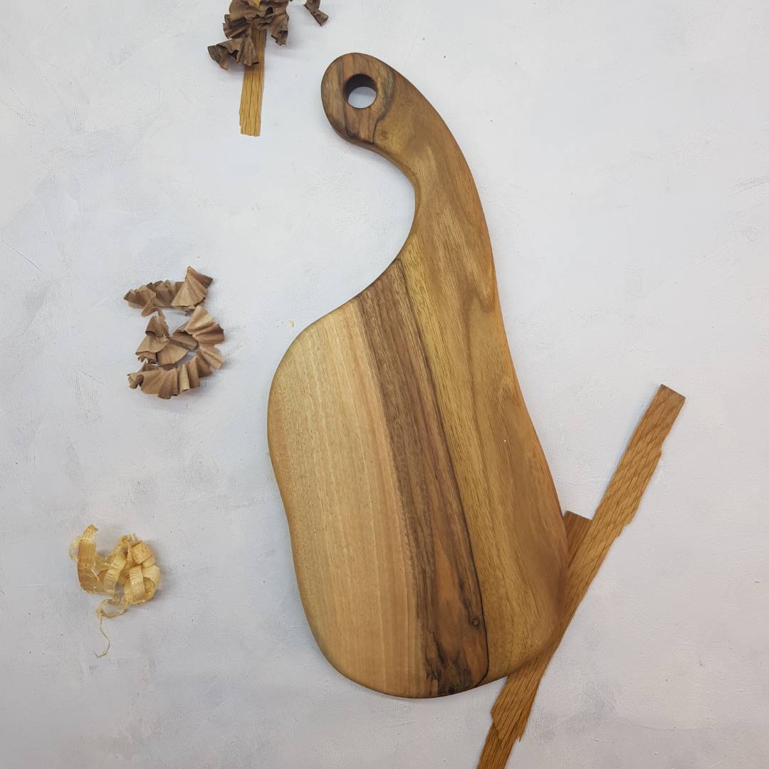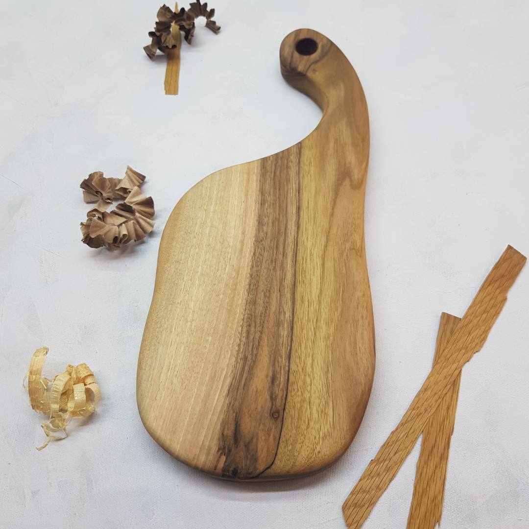 Deska je v obliki loparja, primerna za uporabo na obeh straneh… enkratno, drugačno in uporabno darilo za vse priložnosti…